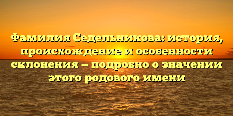 - От истоков до современности: история и происхождение фамилии Седельникова и ее уникальные особенности склонения