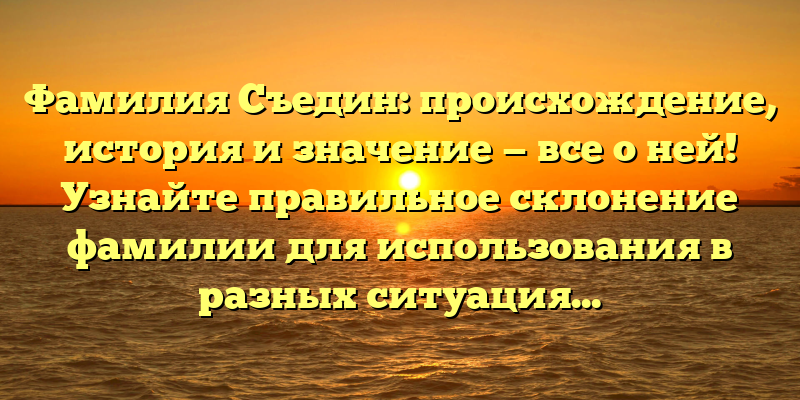 - Фамилия Съедин: история происхождения и значение, а также правильное склонение для всех случаев использования