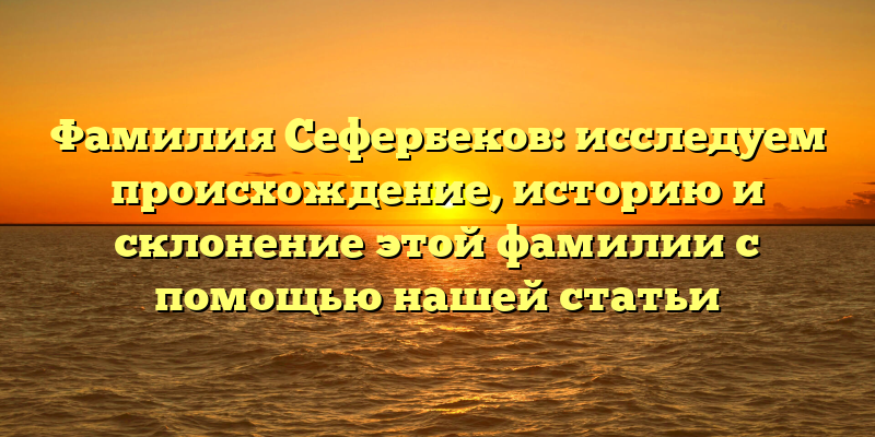 - Познайте историю Фамилии Сефербеков: исследуем происхождение, склонение и знакомим с интересными фактами в нашей статье