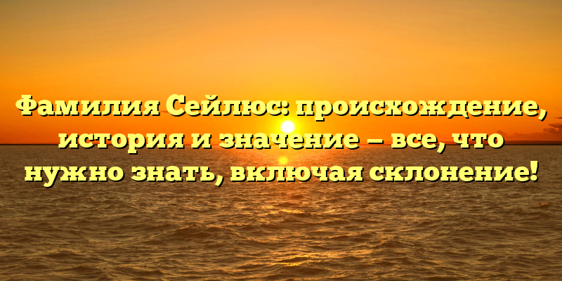 - Исследуем происхождение и историю фамилии Сейлюс: узнайте всё, что нужно знать и научитесь правильному склонению