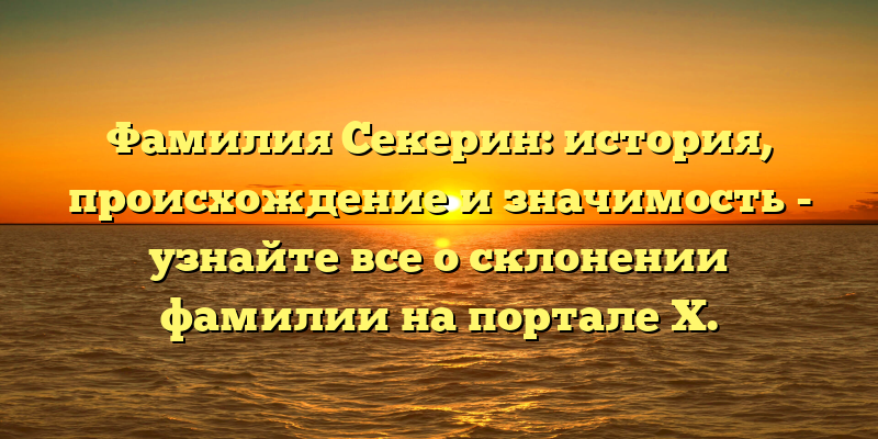 - Рассказываем о происхождении фамилии Секерин и даём советы по ее склонению на портале X