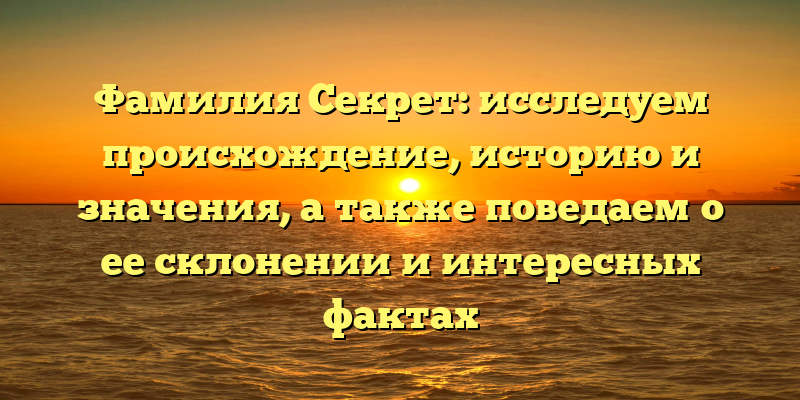 Открываем тайны фамилии Секрет: происхождение, история и значения, склонение и любопытные факты
