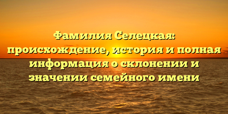 - Фамилия Селецкая: история, происхождение и значимость – всё, что необходимо знать о склонении и значениях этого семейного имени