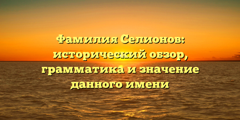 - Фамилия Селионов: уникальный исторический обзор, грамматика и значение имени, которое вам нужно знать.