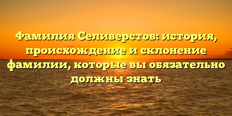 - Изучаем происхождение и склонение фамилии Селиверстов: интересные факты и история родословной