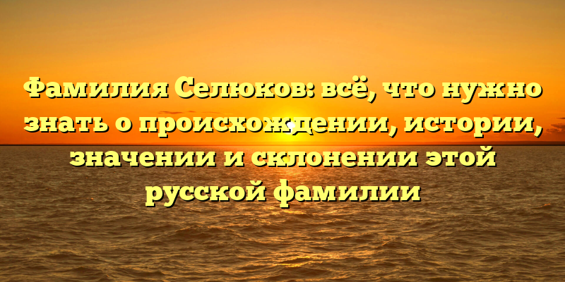- Фамилия Селюков: история, происхождение и значение в контексте русской культуры. Узнайте, как правильно склонять и использовать эту фамилию.