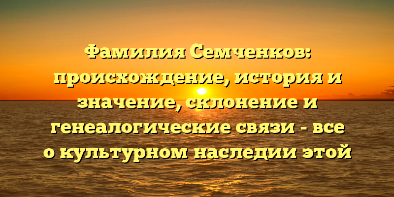 Фамилия Семченков: корни, история, социокультурное наследие и генеалогические связи в одной статье.