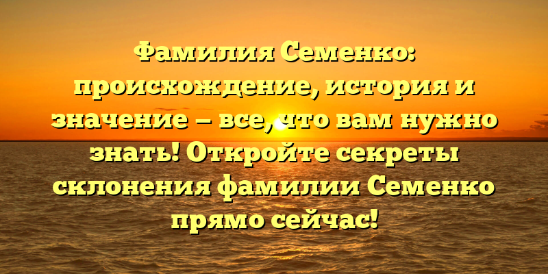 - Раскрываем тайны происхождения и значения фамилии Семенко: узнайте все и склоняйте правильно!