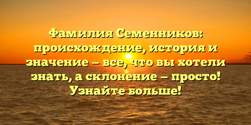В этой статье мы расскажем об истории и происхождении фамилии Семенников, а также о том, как правильно склонять ее. Если вы хотите узнать больше о своей фамилии или просто любопытны, то обязательно продолжайте чтение!