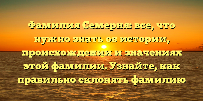 - Изучаем историю, происхождение и значения фамилии Семерня: правильный способ склонения и интересные факты.