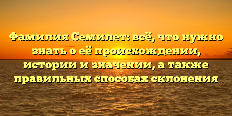- Фамилия Семилет: происхождение, история и значение + правила склонения для полного понимания