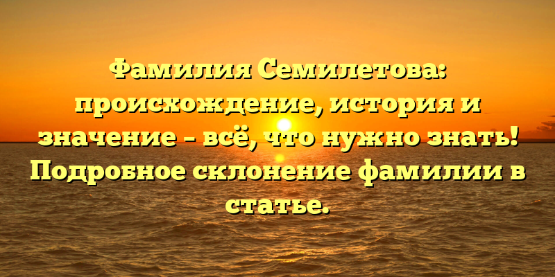 - Раскрываем тайны фамилии Семилетова: происхождение, история и значение, а также подробное склонение.
