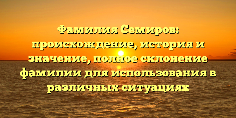 - Фамилия Семиров: исследуем происхождение, историю и значение, а также даём полное склонение для правильного использования в любых ситуациях
