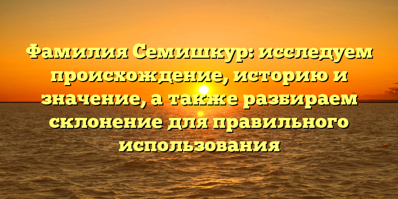 - Фамилия Семишкур: происхождение, история и значение. Разбираем склонение для корректного использования