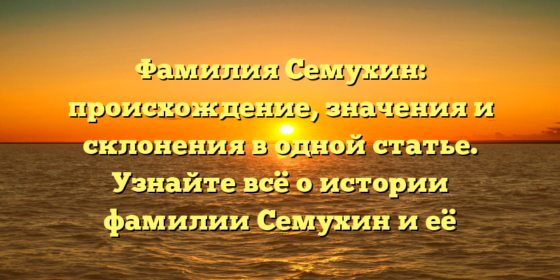 Фамилия Семухин: история, значения и склонения в одной статье. Все, что нужно знать об этой фамилии!.
