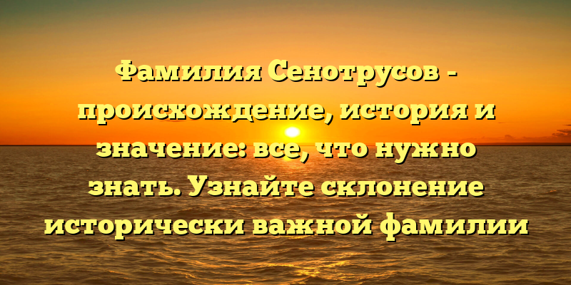 - От истории до значимости: разбираемся в происхождении и склонении фамилии Сенотрусов