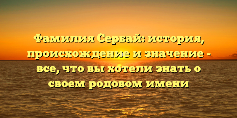 Раскрываем тайны фамилии Сербай: возникновение, эволюция и интересные факты