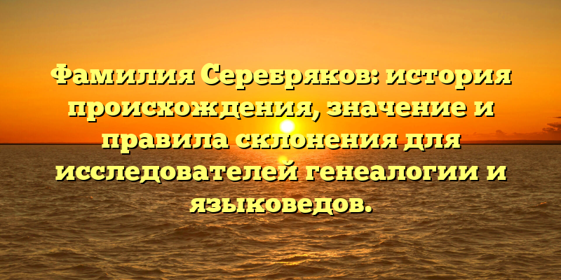 - Изучаем происхождение и значения фамилии Серебряков: руководство по правилам склонения для генеалогов и языковедов