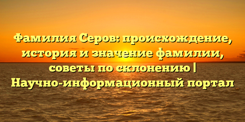 - Фамилия Серов: происхождение и история, значение и правильное склонение – все о ней на нашем информационном портале