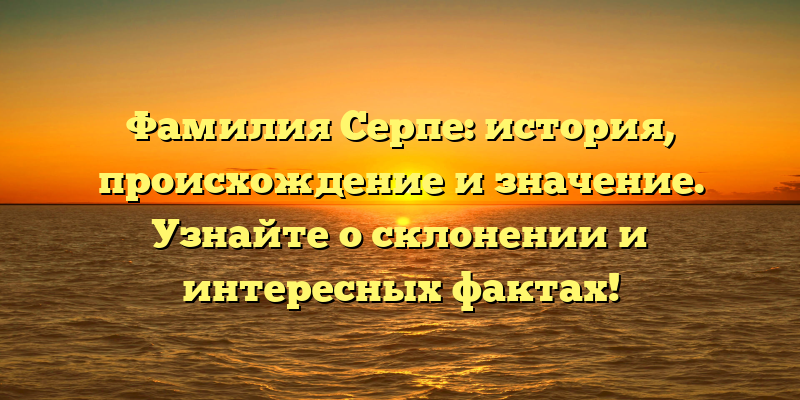- Исследуем происхождение и историю фамилии Серпе: узнайте о склонении и удивительных фактах!