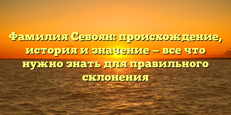 - Фамилия Севоян: происхождение и история скрытых тайн, а значимость для правильного склонения выявлена