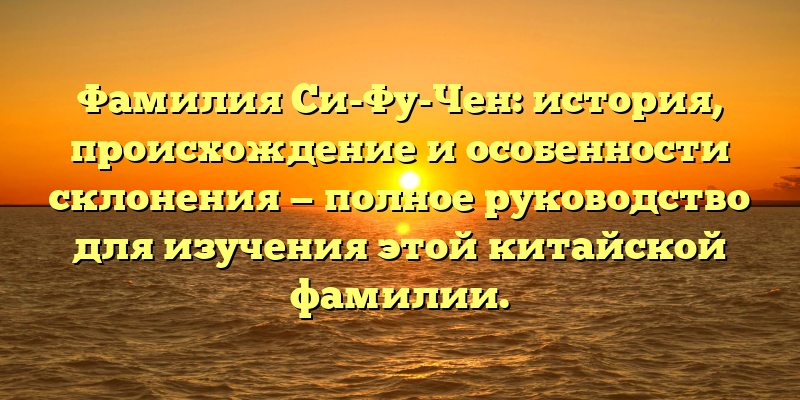 В этой статье вы узнаете о происхождении фамилии Си-Фу-Чен, о ее значении и особенностях склонения. Мы подробно расскажем о том, как правильно писать и склонять эту фамилию, чтобы избежать ошибок в общении с носителями китайского языка.