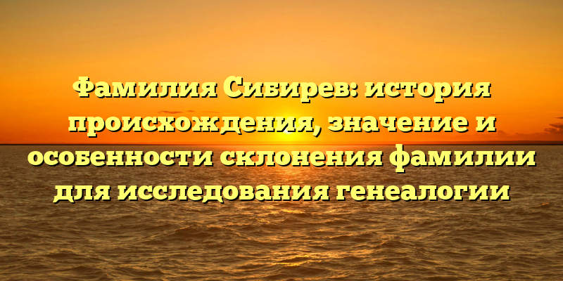 - Фамилия Сибирев: происхождение, значение и склонение — ключевые факты для изучения генеалогии