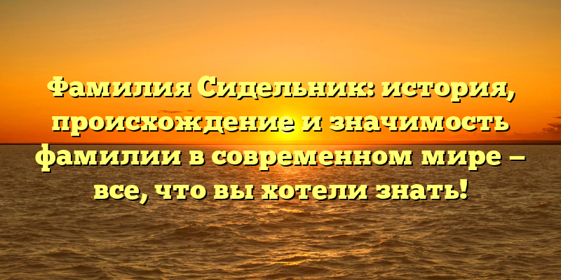 Сидельник — это одна из самых распространенных фамилий на просторах бывшего СССР. Известная своими мужскими и женскими формами (Сидельников, Сидельникова), она носит в себе чрезвычайно богатую историю и является отражением неразрывной связи с мерцавыми традициями.