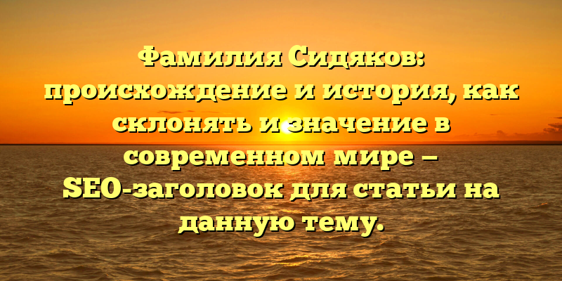Полная история фамилии Сидяков: происхождение, склонение, и значение в нашем времени.