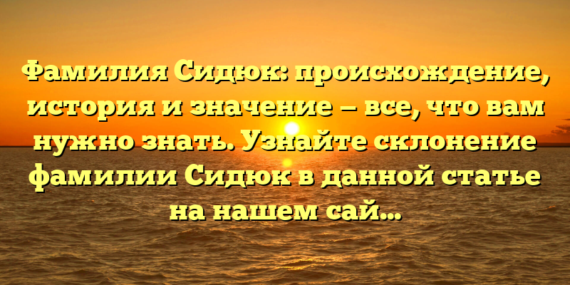 - Фамилия Сидюк: происхождение, история и значение — узнайте все, что нужно знать и склонение фамилии на нашем сайте!