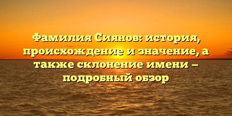 - Фамилия Сиянов: происхождение, история и правильное склонение имени — все, что нужно знать!