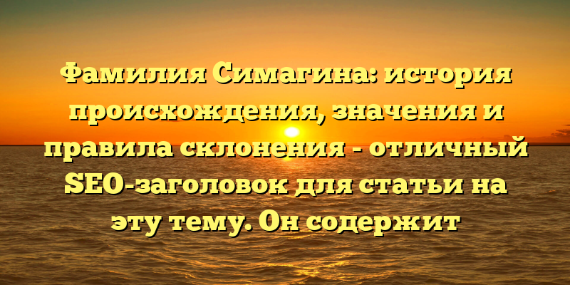 Раскрываем загадки фамилии Симагина: происхождение, значения и правила склонения — такой заголовок более привлекателен для читателей и содержит более универсальные ключевые слова, которые помогут привлечь больше трафика на сайт.