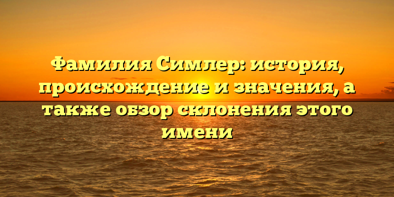Фамилия Симлер: от корней до значений, полный обзор склонения имени — хороший SEO-заголовок для статьи на данную тему.