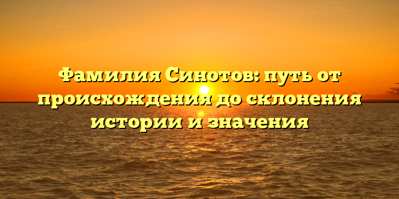 Фамилия Синотов имеет довольно интересный исторический происхождение и значение. Это одна из тех фамилий, которые нельзя оставить без внимания. Значение фамилии можно понять, только если изучить исторический контекст, в котором она появилась и развивалась.