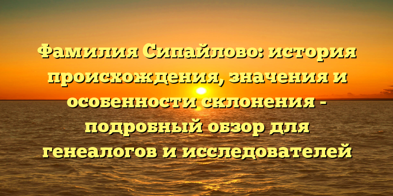 Фамилия Сипайлово: история происхождения и особенности склонения. Генеалогический обзор для исследователей родословных.