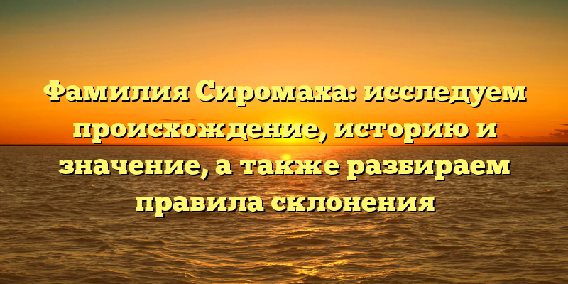 Фамилия Сиромаха: история, происхождение, значение и правила склонения – все, что вы хотели знать