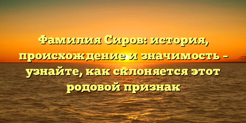 - Фамилия Сиров: происхождение и история, советы по склонению и значение для вашего рода.