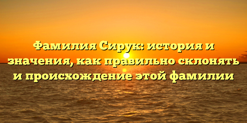 - Фамилия Сирук: исследование происхождения и правил склонения в современной русской речи
