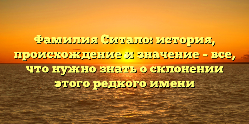 - Фамилия Ситало: происхождение, история и значение. Узнайте все о склонении этого редкого имени