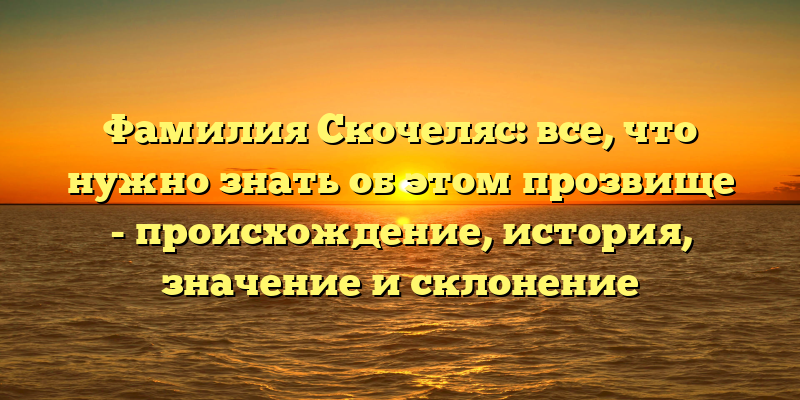 - Фамилия Скочеляс: история, происхождение и значение прозвища. Как правильно склонять и все, что нужно знать о ней