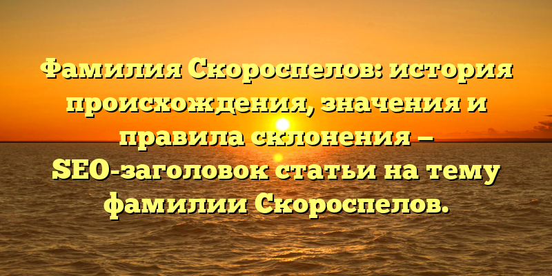 - Скороспелов: происхождение, значения и склонение — исследуем историю фамилии в нашей новой статье!