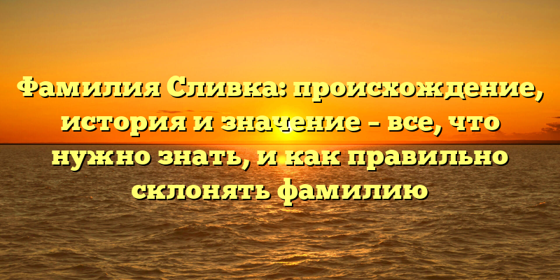 - Фамилия Сливка: происхождение и значение, история и правильное склонение — обзорный гайд