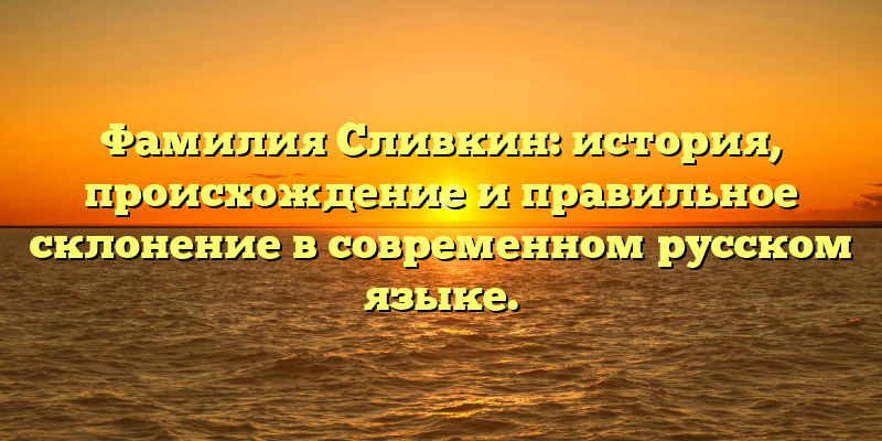 - Фамилия Сливкин: исследуем истоки и осваиваем правила склонения в русском языке