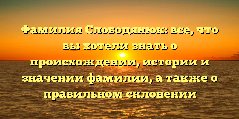 - Фамилия Слободянюк: происхождение, история и значение, а также секреты правильного склонения