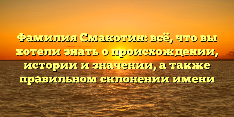 Фамилия Смакотин: происхождение, история и значение. Правильное склонение имени в одной статье.