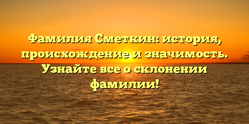 - История и происхождение фамилии Сметкин: разбираем склонение и значимость