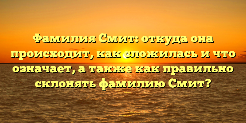 - Фамилия Смит: происхождение, история и правильное склонение в одной статье