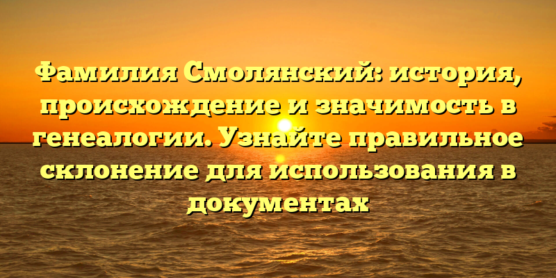 - Фамилия Смолянский: происхождение и значение в генеалогии + правильное склонение для документов