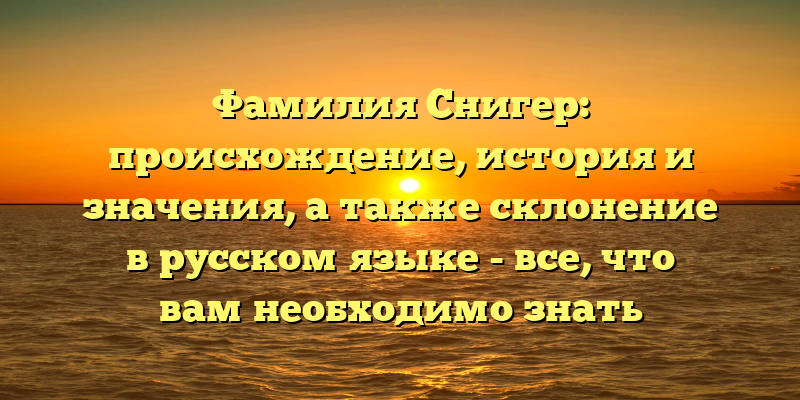 - Фамилия Снигер: происхождение, история и значения в русском языке: полный гид для любознательных