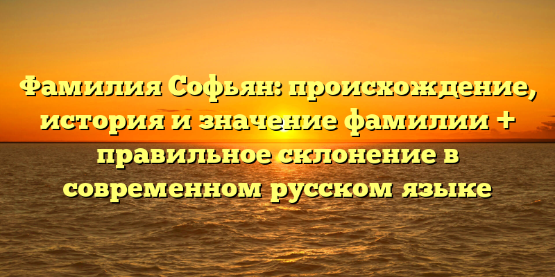 - Фамилия Софьян: история и происхождение, значение и правила склонения в современном русском языке